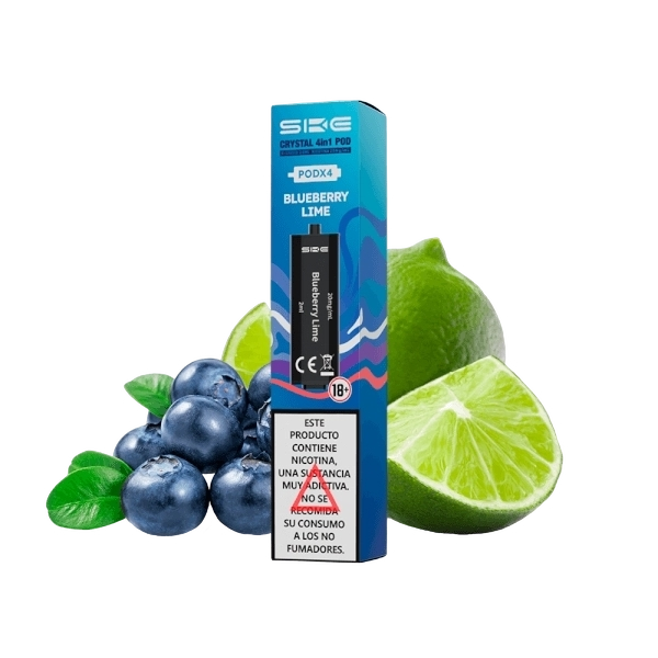 Ske Crystal 4 in 1 Prefilled Pod Blueberry Lime. Diseñado para los amantes del vapeo que buscan una experiencia fresca y vibrante, este e-líquido combina la dulzura natural de los arándanos maduros con el toque cítrico y refrescante de la lima.