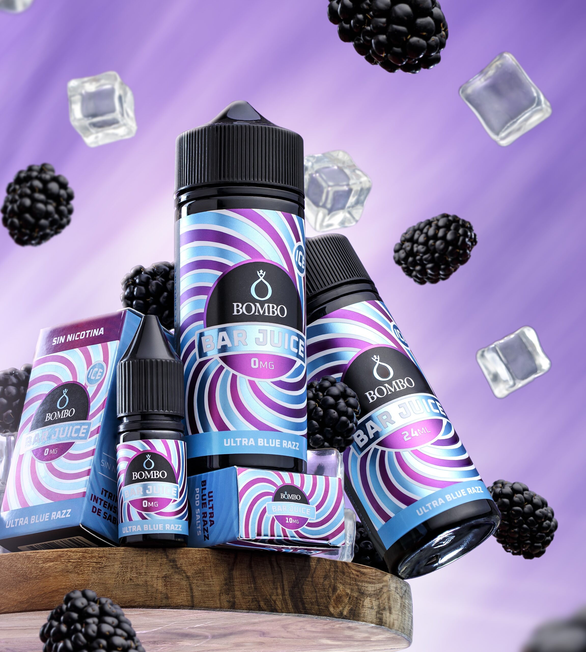 Ultra Blue Razz Ice en formato Longfill de Bar Juice by Bombo sabe a frambuesas azules combinadas con un sutil toque cítrico. Un deliciosa receta en la que Bombo ha logrado una intensidad sin precedentes.
